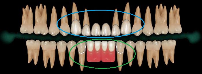 ○ ― 「ブリッジ」を被せました。 ○ ― 「部分入れ歯」を入れました。 |
