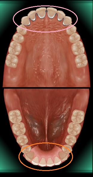 ○ ― 「ブリッジ(メタルボンド)」を被せました。 ○ ― 「部分入れ歯(ノンクラスプデンチャー)」を入れました。 |